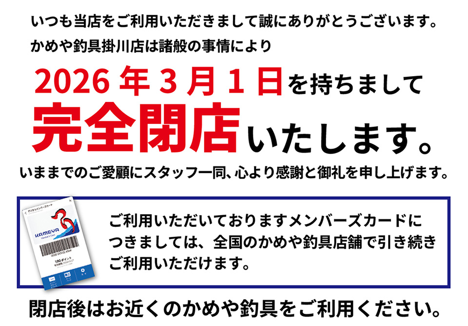かめや釣具掛川店 閉店のお知らせ
